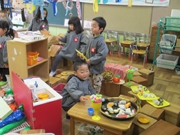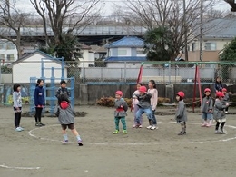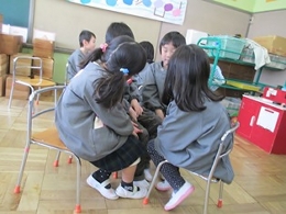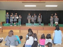 2月前半は生活発表会という大きな行事に向かっての活動が多く入っていました。後半は修了に向けての活動で毎日忙しい日々を送っていた子供たちです。発表会に向かって練習している時期に、一小の3年生の仕事体験の受け入れをしました。幼稚園に3年生が遊びに来てくれて、練習の合間の遊びの時間に一緒に遊んでもらいました。大喜びの子供たちでした!