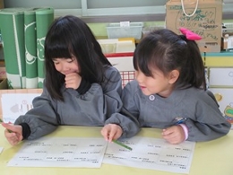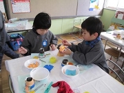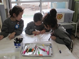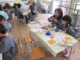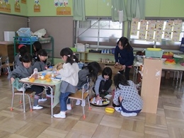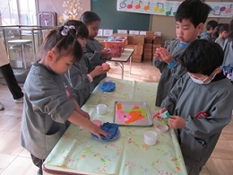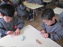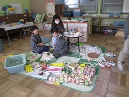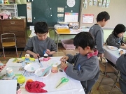お雛様作りに取り組みました。どちらのクラスも子供でなくては作れない、味のあるが作品出来上がりました。