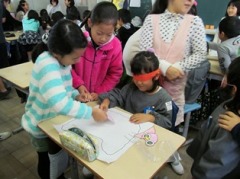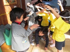 5年生とは10回に及ぶ継続的な活動を行ってきました。園に来てもらい遊んだり、小学校に行って遊んだりして親睦をはかりました。はじめの頃は遠慮がちだった子供たちでしたが、回を重ねるごとに親しさを増し、交流の日を毎回楽しみにしていました。