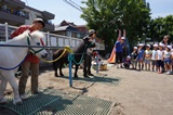 お別れのご挨拶です。次回は4歳児や未就園児の子どもたちとの触れ合いです。「ジャック」と「ダンディ」また来てね!