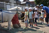 ひとりひとり背中に乗せてもらいました。乗せてもらったお礼に、おやつの人参を食べさせました。