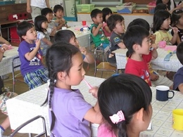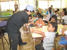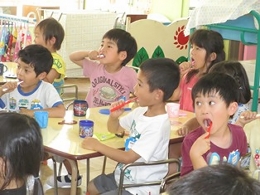 子どもへの歯磨き指導のあと、保護者向けに幼児期の歯の大切さについてお話していただきました。また秋にも行いますので、多くの保護者の皆様にご参加いただけたらと思います。