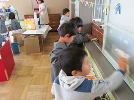 12月の終わりには大掃除を行いました。自分の持ち物の入った引き出しや、遊び道具などを、みんなできれいにしました。