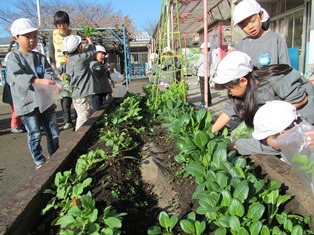 らいおん組の花壇には、小松菜とラディッシュが立派に育ちました!