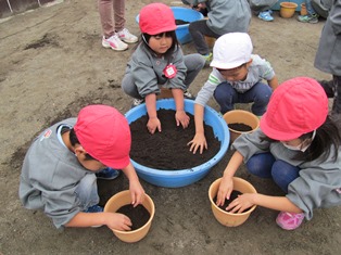植木鉢に球根を植えました。春に花が咲くのがとても楽しみですね!