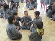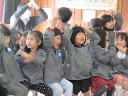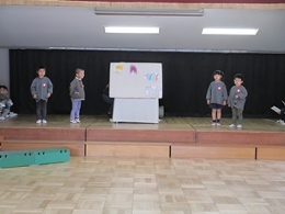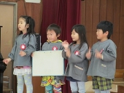 1年間お世話になったらいおん組のみんなに感謝の気持ちを込めて、うさぎ組が企画したお別れ会でした。うさぎ組の子どもたちの司会で、会が進行しました。みんなで考えた言葉を友達と一緒に大きな声で話す姿は、頼もしかったですよ!