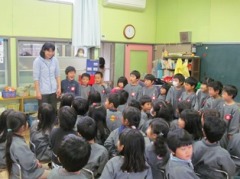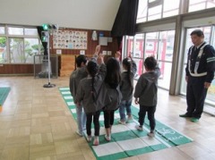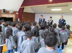春休み前の安全指導は、警察の方に横断歩道の渡り方を指導していただきました。