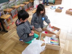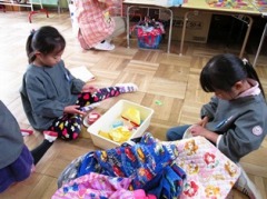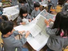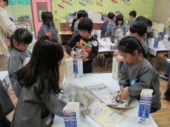修了記念製作として、牛乳パックで作るままごとサークルや椅子の新聞詰めをしました。