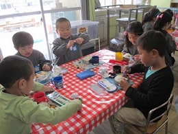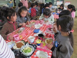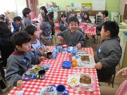でも「カレー」といっても、各家庭でいろいろなカレーがあるのですね!見ていてとても楽しかったですよ!いよいよ幼稚園生活最後のお弁当です。いったいみんなのお弁当はどんなお弁当なのでしょうか?おたのしみ~(^^)v |  |