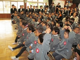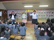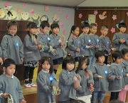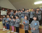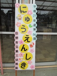 桜の満開を過ぎピンク色の中に新緑が見え始めたと思ったら、突然冬に舞い戻ったような寒さ。そんな中むかえた第50回入園式でした。
