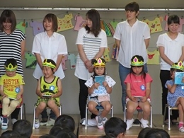 出し物の前の幕間に、実習生の先生方にゲームをしてもらいました。