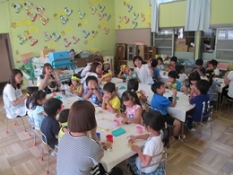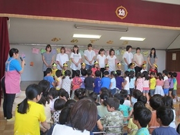 楽しい出し物をしてくださったお母さん方に、お礼の歌を歌いました。