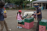 一人ひとり背中に乗せてもらい、そのお礼におやつの人参をあげました。