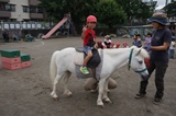 うさぎ組がリトルホースと触れ合う日でした。朝から雨が心配されましたが無事触れ合うことができました。