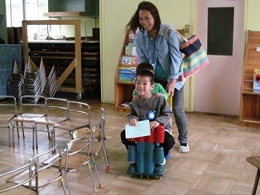 いっしゅう・カー (キングブロックで作った車を親に押してもらって部屋を一周するコーナでした)