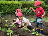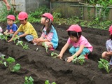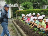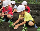地域の方に手伝っていただき、幼稚園の畑にサツマイモの苗を植えました。今年はお芋どのくらいとれるでしょうか?