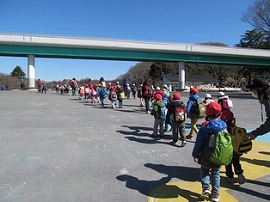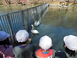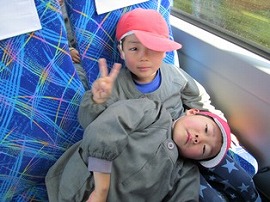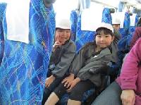 お別れ遠足に行きました。バスの中では外の景色を眺めながら、隣のお友達と会話を楽しんでいました。