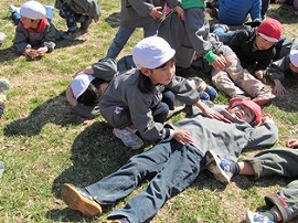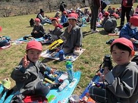 そしていよいよお弁当。体を動かしたので、お腹がすいたのかな?割とみんな早く食べ終わりました。