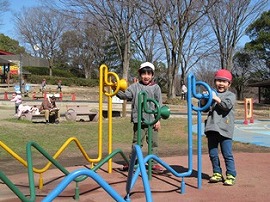 ここで記念写真をとり周りを散策したあと、遊具で遊びました。