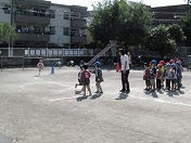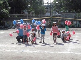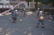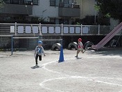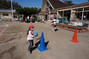 運動会のときのおみやげに、個人のボールをもらいました。ドリブルをしたり、ボールを片手でもってUターンリレーをしたりして遊びました。