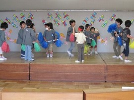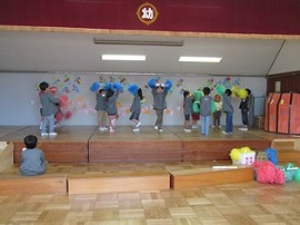 運動会の再現遊びで「RYUSEI」を踊っていました。