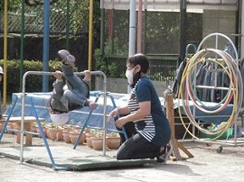 鉄棒に自分の力で逆さまにぶら下がることができるようになった子が増えてきました