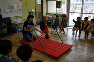 運動会に向けての活動で、竹馬や鉄棒に取り組んできました。運動会以降も更に難しいことに挑戦する姿が見られました。