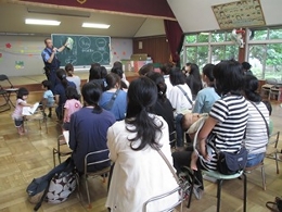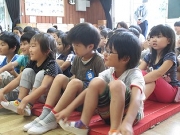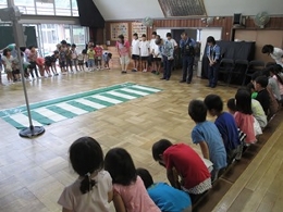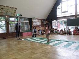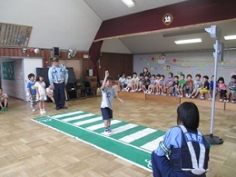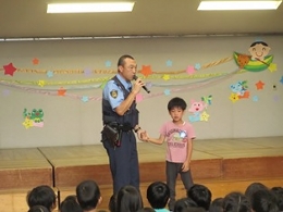保護者向けにお話をしていただいたあとは、子どもたち向けに不審者対応の話と、交通安全のお話をしていただきました。