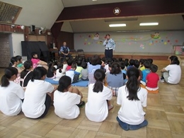 うさぎ組は、腹話術を使っての話にとても興味を惹かれたようでした。らいおん組は昨年度もあったことのある「ケンちゃん」に親しみをもって挨拶をしていました。