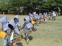 入園・進級して、新しい環境でのスタート。あっという間に過ぎた3週間でした。4月28日に行われた一中地区の学校の合同避難訓練に参加しました。第三幼稚園は、隣の第一小学校に避難し、保護者のお迎えを待ちました。