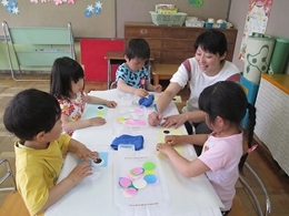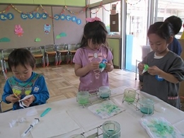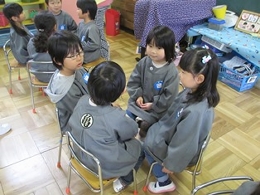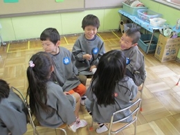 らいおん組になり初めてのグループでの話し合いです。グループ名を決めました。
