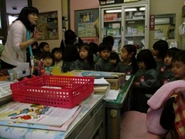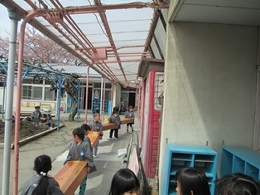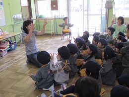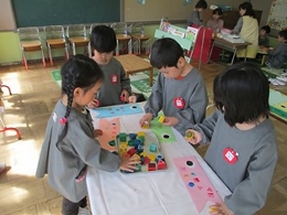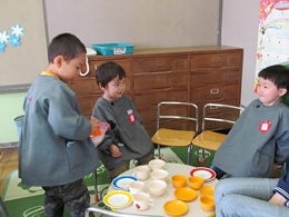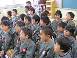 クラスで集まって先生のお話を聞いたり、帰りの支度をしたりしてる時の様子です。