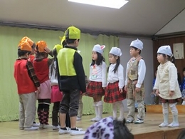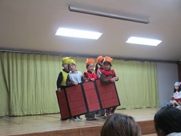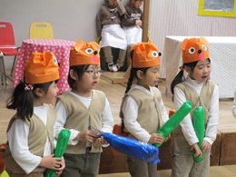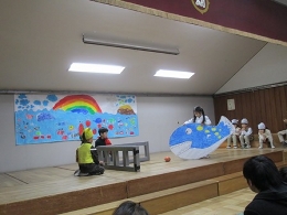 日に日に劇としてまとまっていきました。ところどころ予定通りにいかないところもありましたが、大きく動揺することもなく乗り切っていくところが、さすが年長!と思いました!楽しそうに演じていたのがなによりでした!