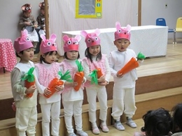 たくさんのお客さんの前で声がいつもより小さくなってしまったうさぎ組でした。でも、最後まで一生懸命に頑張りました!