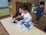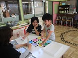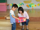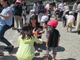 今回初めての試みで、この行事のために、昨年度修了生の保護者のスタッフの方が、未就園児を別室で預かってくださいました。そのおかげで、保護者の方に在園児と遊ぶことに集中していただくことができました。普段お兄ちゃんお姉ちゃんで頑張っている在園児にとっても、お母さんを独り占めできる貴重な時間となったことと思います。本当にありがとうございました!