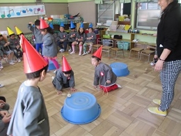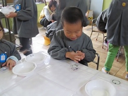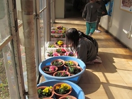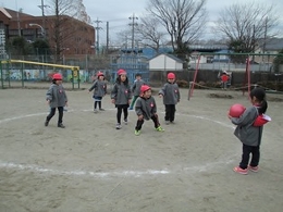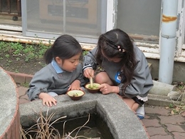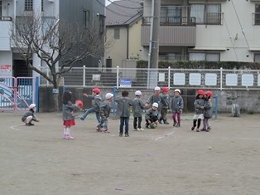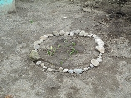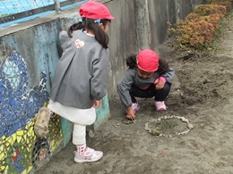 とてもかわいい遊びが見られました。春を感じて園庭に芽を出したお花を、踏まれてはいけないと、石で囲いをしてくれました。これなら小さな花の芽を誤って踏んでしまうということはないですね!!