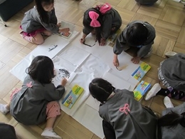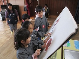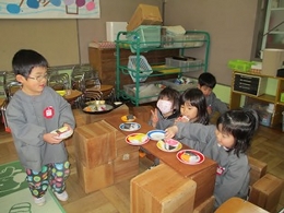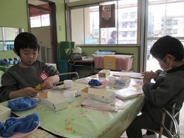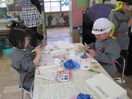 毎日幼稚園に楽しく通えたのは、おうちの方のおかげでした。お世話になったおうちの方へのプレゼント作りに取り組みました。