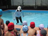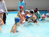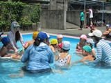 らいおん組は小プールで少し体を動かしたあと、大プールの中を歩いてみました。小プールより水温が高く「あったかい~」という声が聞こえていました。