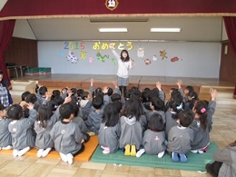 三学期の始業式を行いました。ほとんどの子どもたちが元気に登園し幼稚園に活気が戻ってきました。冬休み中どのように過ごしたのかを話したり、未年の先生の今年の抱負を聞いたりしました。