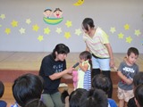 最初に「織姫と彦星」のお話のパネルシアターを見ました。七夕の日にお願い事をする意味がわかってもらえたでしょうか?