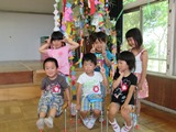 おやつ後にきっず組のお友達とお別れして、七夕飾りの前記念撮影です。