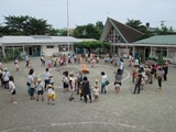 そして七夕の集いの翌日、みんなの願い事が空のお星様のところまで届くように、七夕送りを園庭で行いました。