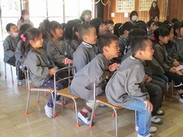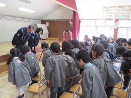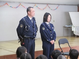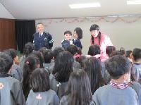 春休みが目前に迫って来ています。らいおん組は1年生にうさぎ組は年長にそれぞれ進級します。新しい生活を前に、交通安全の話をお巡りさんにしていただきました。