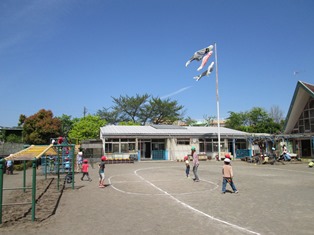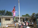 そして、幼稚園のポールに上げました。色とりどりの鯉のぼりがとても気持ちよさそうに泳いでいました。
