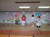 ホールの舞台では、リボンをつけたステッキをもって、踊りを楽しんでいました。