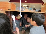 大型積み木を使ってキャンピングカーを作ったり、昨年の年長さんの遊びを覚えていて、お化け屋敷作りが始まったりしていました。お化け屋敷の横には、お化け作りコーナーもできていましたよ!