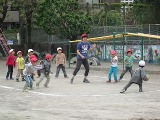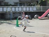 外では、中あてから進化した「カプセルドッジボール」やリレーを楽しんでいました。