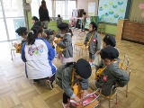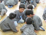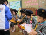 帰りの支度の様子です。タオルをたたんでカバンに入れたり、園服を着たり、担任の話を聞いたりして、最後におたより帳にシールを貼って帰ります。随分落ち着いて行動できるようになりましたよ!