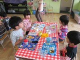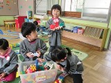 お部屋では、うさぎ組の時に遊んだことのあるプラレールに再び熱中する子、ままごとをする子がいました。