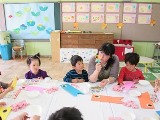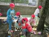 人数は12人と少ないけれど、元気いっぱいのうさぎ組。保育室では、ままごとやプラレール、ブロックを楽しんでいます。園庭では木陰で草花を使ったケーキ作りをしていました。
